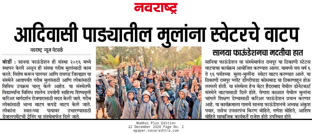 Sanaya Foundation believe on principle “Invest in the future of those with no future, So that they can reinvest”. Based on this principle foundation works for under privileged section of society to help them to improve their life. The foundation works for following: